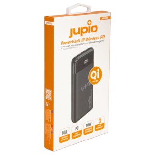 Jupio PowerVault III Wireless PD är toppmodellen i Jupios PowerVault III-serie. Powerbanken har högkvalitativa litiumpolymerbattericeller med en kapacitet på 10 000 mAh. Det är möjligt att ladda dina USB-enheter med USB-typ A-utgång eller USB-typ C-utgång. Dessutom ladda din smartphone trådlöst om din smartphone är lämplig för Qi-laddning.