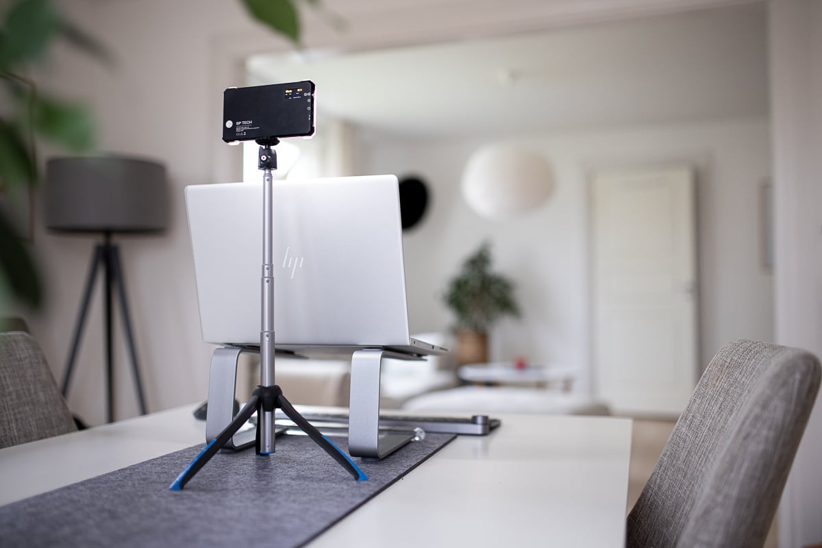 SP TECH Mobile LED Moblie Light L2 tillsammans med Benro BK15 bordsstativ utgör en utmärkt kombination för att ge lite extra ljus i dina videomöten.