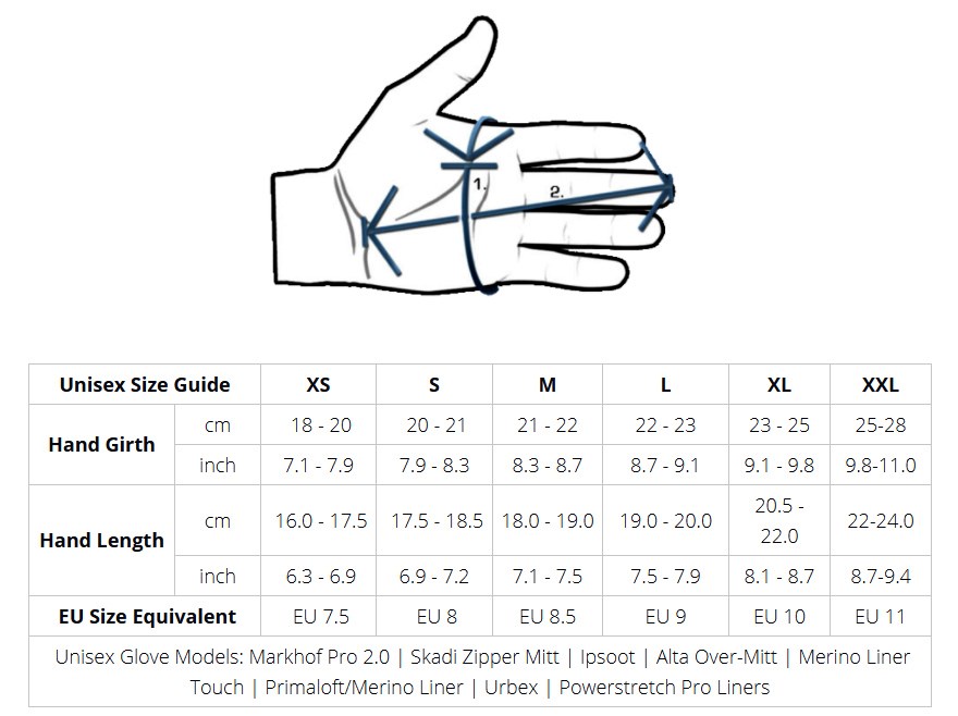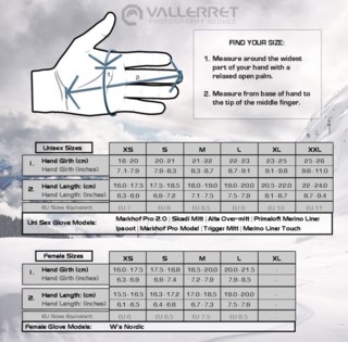 Titta på bilden nedan för att hitta en storlek som passar dina händer, titta på bilden och mät dina händer. Vet du vilken storlek du har på dina andra handskar kan du titta i dem och se vilken storlek du har och vi rekommenderar att du väljer en storlek större än du har normalt då Vallerret har en tight passform. Brukar du använda Medium i vanliga fall bör du välja Large istället när du beställer Vallerret-handskar.